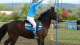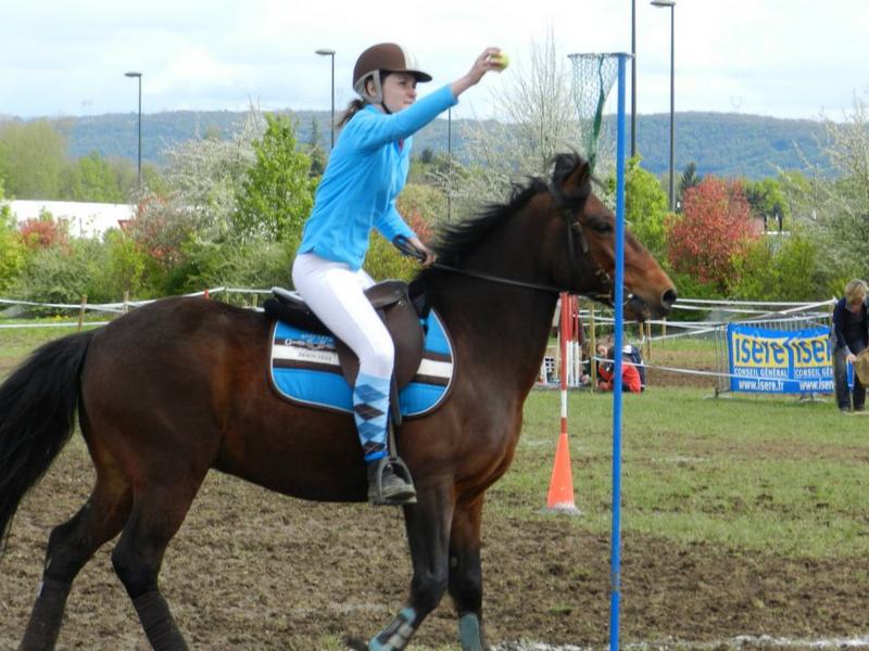 En revenant, il prend une balle sur le cône de son choix et la transmet au cavalier suivant.