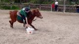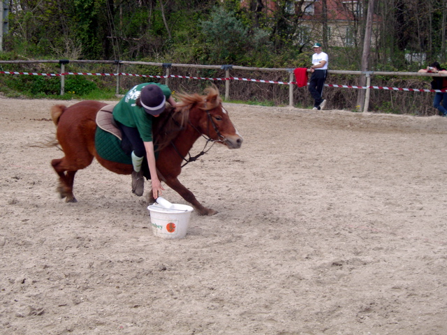 Si un piquet tombe, le cavalier doit replacer l’équipement, si nécessaire en descendant. Si un carton tombe, le cavalier descend, le récupère puis remonte à cheval. Si un cavalier manque le seau ou le renverse, il peut descendre pour corriger son erreur. Si un cavalier manque un carton, sans que celui-ci ne tombe du piquet, il peut en prendre un autre.