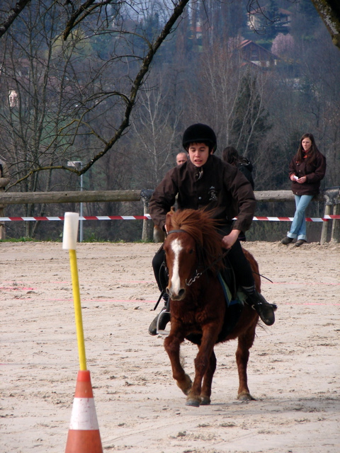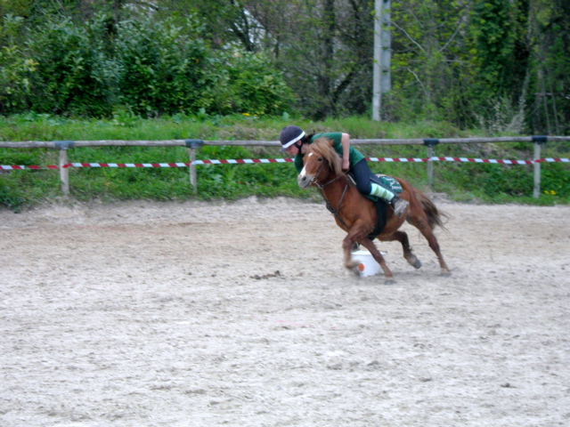 Au signal du départ, le cavalier n° 1 s’élance, prend l’un des cartons sur un piquet de son choix et va le déposer dans le seau. Il revient ensuite franchir la ligne d’arrivée.