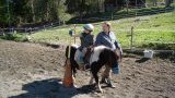 L’animation "bébé cavalier" se compose de 15 min d’approche du poney et de préparation : lui dire bonjour, le brosser, lui faire des calins... et de 30 min d’animation ludique en carrière avec un des parents pour tenir le poney.
