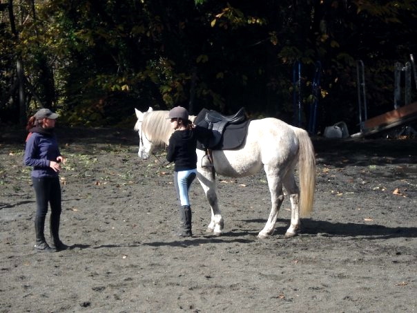 - à pied : aller chercher les chevaux au parc et les ramener, approfondissement des notions sur les soins, vérifications avant et après le travail, soin et détection des plaies, blessures, mettre des protections...